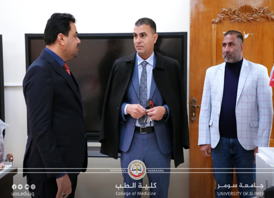 استقبل السيد مساعد رئيس جامعة سومر للشؤون العلمية الأستاذ الدكتور (علي مانع التميمي)، وبرفقته السيد عميد كلية الطب الأستاذ الدكتور (حاتم عبد الكريم الشويلي)، السيد عميد كلية التمريض بجامعة ذي قار الأستاذ الدكتور (أحمد عبد الله عبد).