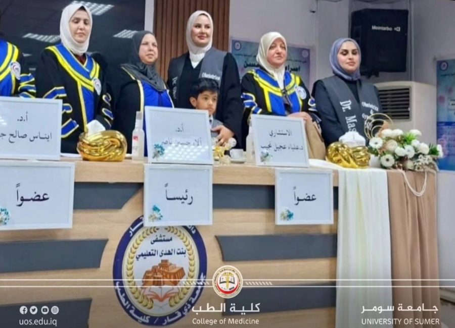 شاركت التدريسية في كلية الطب جامعة سومر التدريسية الاستشاري في الامراض النسائية الدكتورة (علياء عجيل الغالبي) في لجنة مناقشة طلبة البورد العراقي والدبلوم العالي في اختصاص النسائية والتوليد، والتي أقيمت في (مستشفى بنت الهدى) بحضور نخبة من الأساتذة والاستشاريين في الاختصاص.