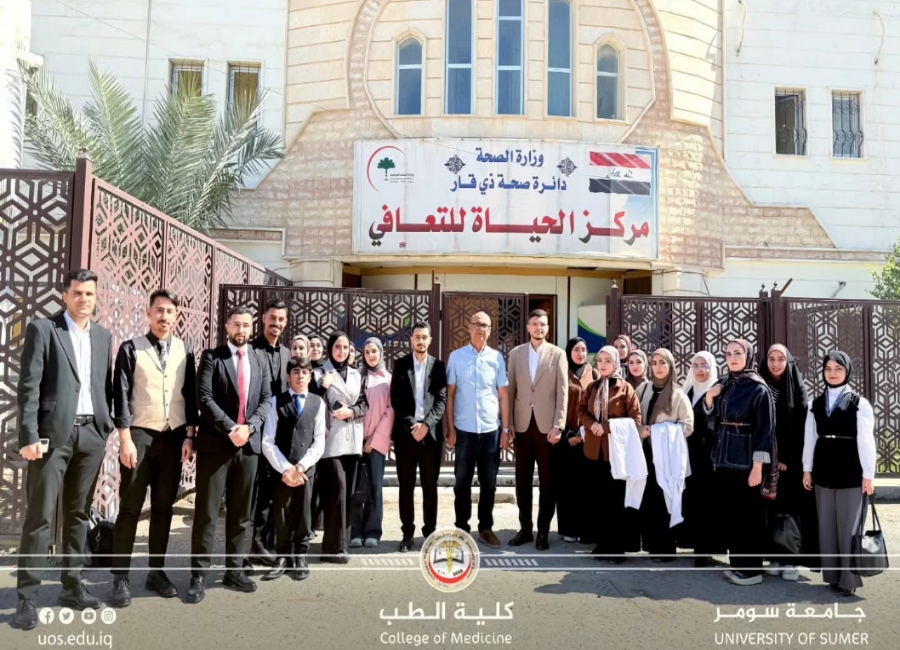 أوفدت كلية الطب في جامعة سومر طلبة المرحلة الخامسة برفقة التدريسي المدرس الدكتور (جعفر صادق جعفر) إلى مركز الحياة للتعافي التابع لمستشفى الحسين التعليمي في دائرة صحة محافظة ذي قار، وذلك في إطار تعزيز الجانب التطبيقي للدراسة.