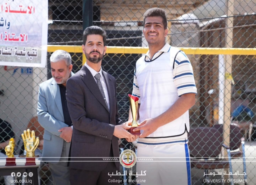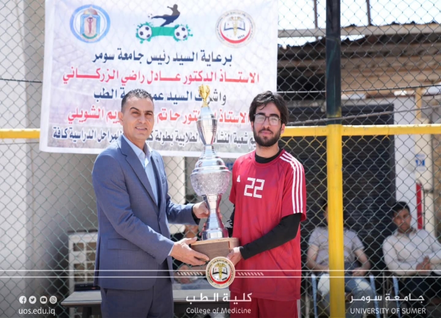 اختتمت كلية الطب بجامعة سومر بطولتها السنوية لكرة القدم، التي نظمتها شعبة النشاطات الطلابية على أرض ملعب الجامعة، وذلك برعاية كريمة من السيد رئيس الجامعة الأستاذ الدكتور (عادل راضي الزركاني) المحترم.
